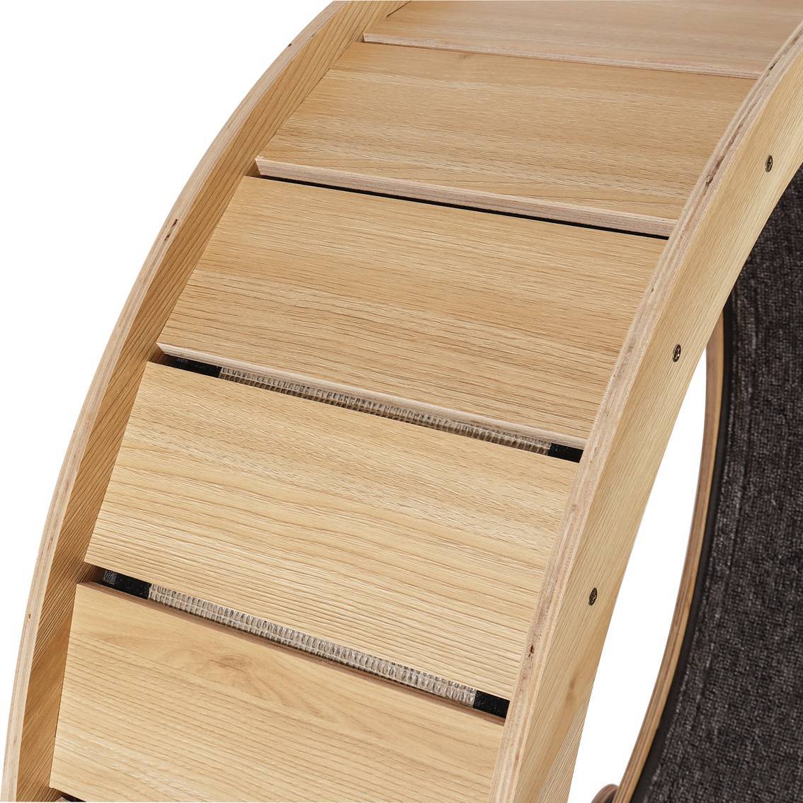 The base is designed with silent pulleys, even if your cat is exercising at night, the minimal running noise will not form a disturbing factor in daily life and at night. The cat wheel is made of solid wood, hand-applied with non-toxic and odorless water-resistant varnish, in addition to a special fixed piece and chemical-free carpet, which makes the handmade wheel very strong and durable.