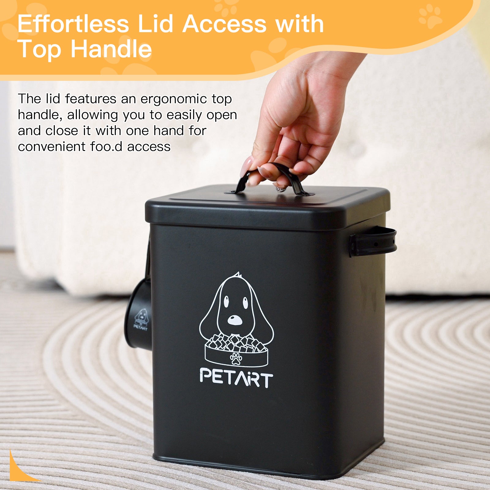 Dog Food Storage Container With Dog Ball Toy, Metal Pet Food Storage Containers,Cat Food Storage Container With Spoon & Cute Desiccant